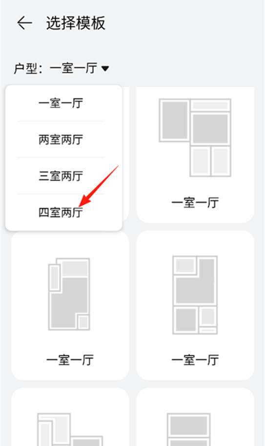 4、点击屏幕下方的“三室两厅”,来更换自己的户型,方便模拟。