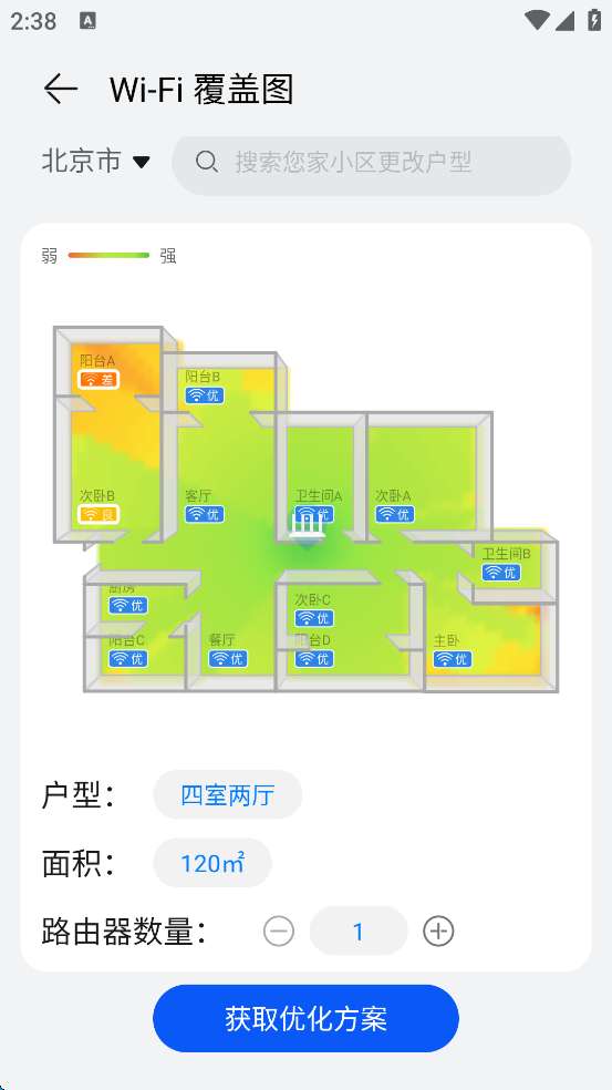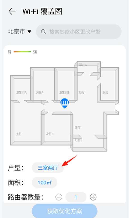 10、如下图,将Wi-Fi放入卫生间b,Wi-Fi覆盖整个房子的情况。