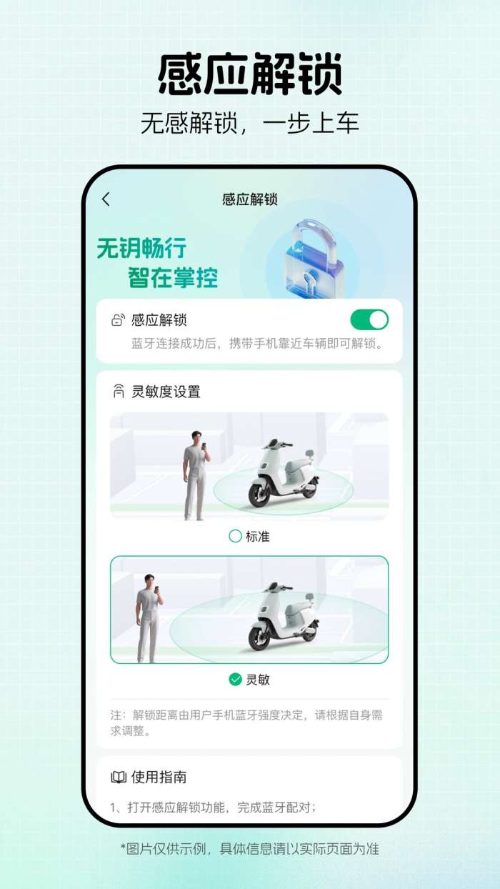 1、操作方便:用户只需通过蓝牙连接,即可轻松实现电动车的远程解锁、锁定等操作。