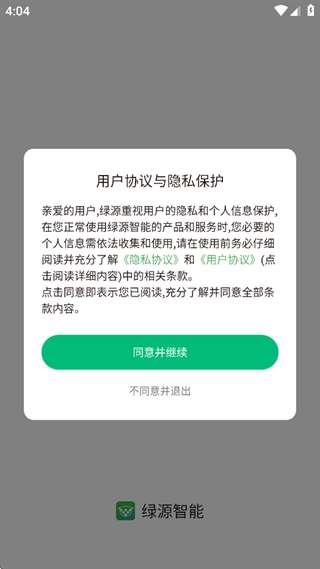 1、打开应用程序,阅读用户协议和隐私保护,点击同意并继续。