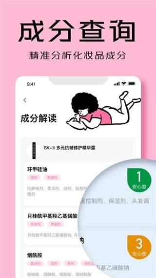 1、成分分析:深入解读化妆品成分清单,标记风险成分和功能成分,帮助用户科学理解产品配方。
