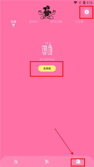 4、选择最后一个板块,这里可以查看我的个人化妆品,选择中间或者右上角都可以添加。