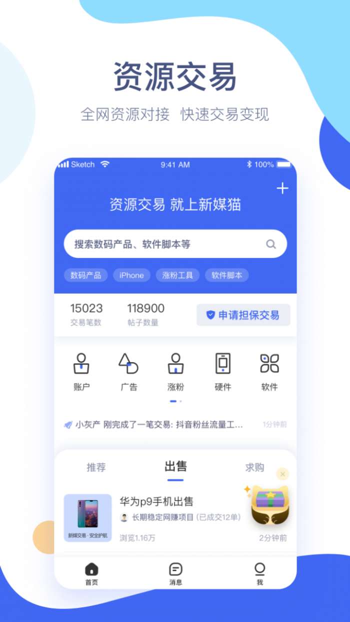 新媒猫是一款能够为用户提供网赚资源的应用,这里有很多优质的行业信息、项目的分享、人脉的圈子和各种资源的买卖,让想要创业的朋友们把握机会,并且平台对于买卖提供担保,让用户买卖更加放心,更有专业的客户,进行1对1的服务,用户不用担心售后问题。
