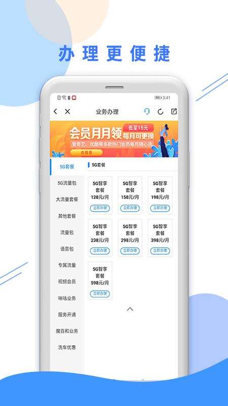 2、业务办理,可以轻轻松松的进行办理,快速让每一位用户更好的进行处理各类业务来快速进行更改套餐等各种业务