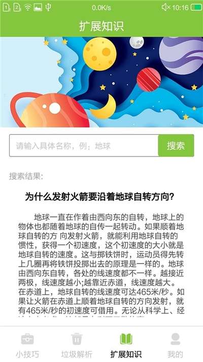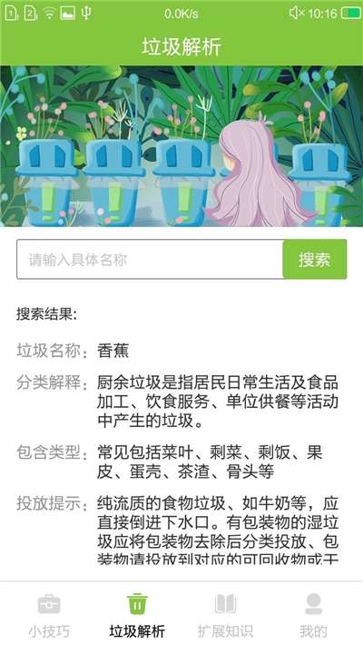 3.随时输入不同的垃圾名称以了解分类,您可以从扩展的知识内容中学习。