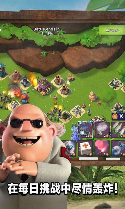抢滩大作战 Boom Beach是一款战争类策略游戏,精美的画面,别出心裁的制作,享受精美炫目的战斗,游戏中你需要率领自己的部队进攻一座座敌人防守严密的基地,每座基地都有独特的工事和守卫,拔掉每一座山头都需要你精心策划。敌军的大Boss更是需要你付出巨大的牺牲!敌人的不同基地分布在不同的海岛上,你顺便还可以来个列岛大周游。另外,除了敌人的基地,你还可以偷袭其他玩家建造的基地哦!把他们的好东西统统抢过来!记住,《抢滩大作战 Boom Beach》和《部落战争》拥有同样的游戏主旨,别人抢你的,你也可以抢别人的,尽情搞破坏吧!