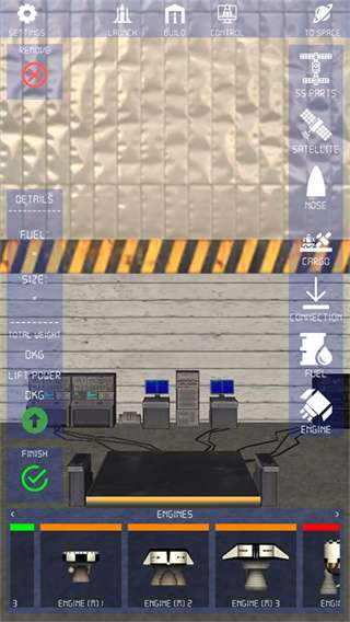 2、完成部件组装,在建造界面,选择并组装火箭引擎等部件,点击完成按钮,确认部件的安装,推进建造进程