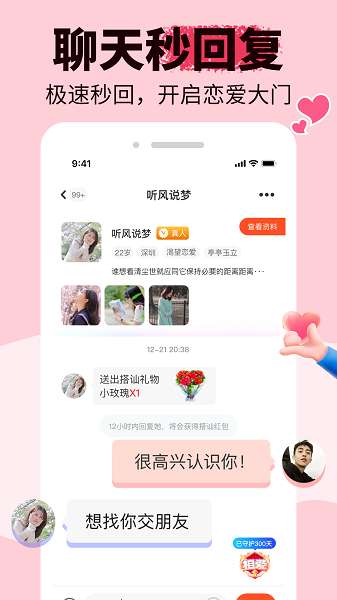4、免费聊天:所有基本社交功能都是免费的。立即注册,享受无限制的消息发送和朋友匹配,降低社交互动的门槛。