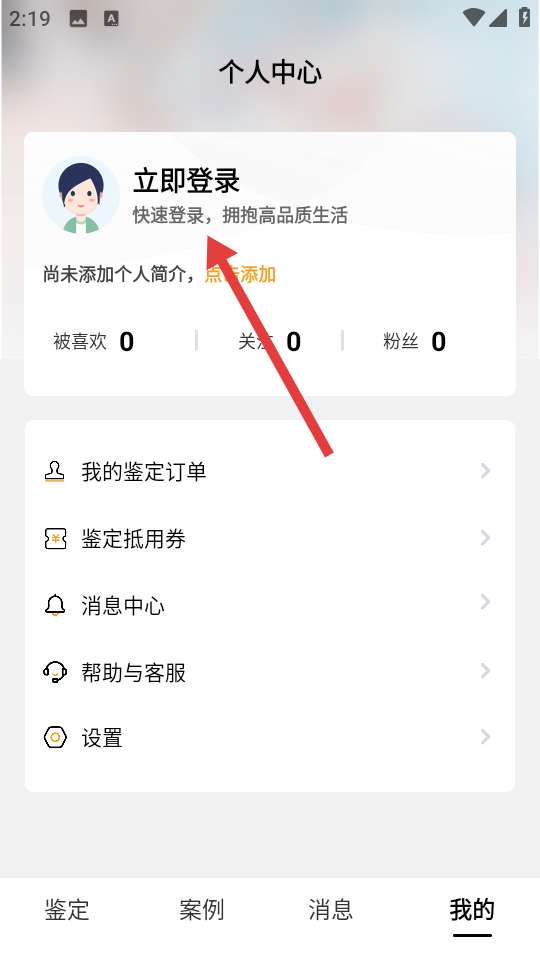 3、点击进入个人中心界面能看到头像区域,点击头像旁的入口可以进行登入操作,即可进行账号登录,登录后能更好地个性化使用APP,让使用体验直接拉满。