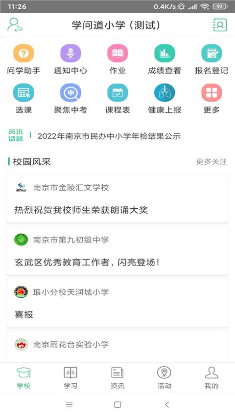 4、点击下方的学校板块,可以查看学校的通知等内容。