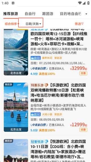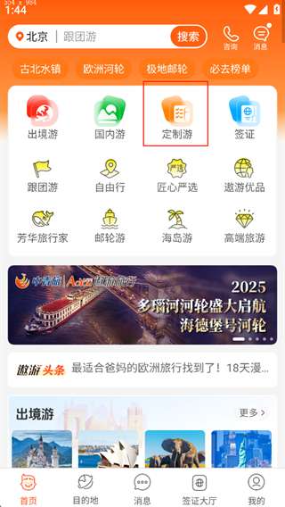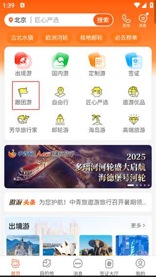 1、打开软件,点击跟团游。