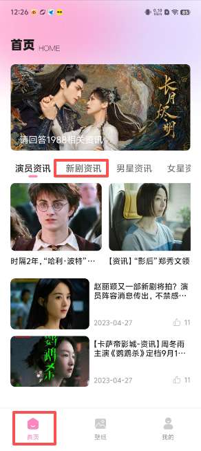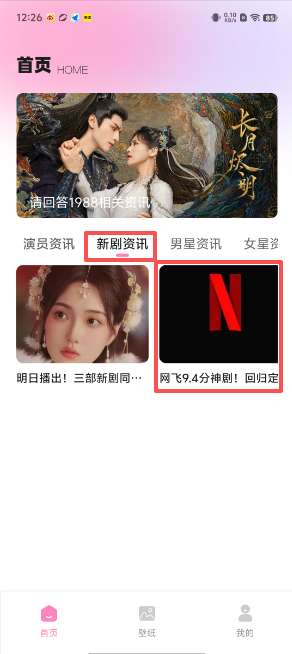 1、打开软件进入主页,在页面上找到“新剧信息”。