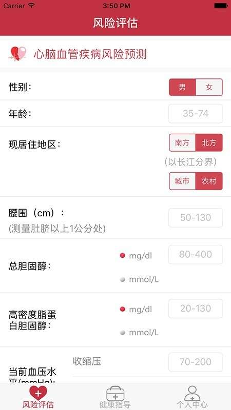 《心脑血管风险评估》软件特色: