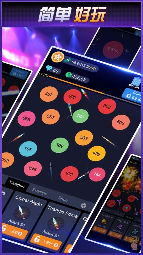 在你每一次进行投掷的时候都有一定的特效你是可以看到的,还有很多各种不一样的飞刀是可以去解锁的。