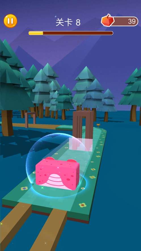 穿行无阻一款跑酷游戏,要控制的就是动物形象,在赛道上面进行障碍的躲避过程中,还能够收集一些果子来接孩子给的挑战分数在这里自己的角色是可以更换体型的,比方说前面的障碍通道比较的话,可以另由于手势进行滑动就可以改变自己动物角色的体型,并安全的通过障碍,可以继续前进,收集更多新的水果。后面还会有一些金币可以升级之后就能够接受一些新的动物角色。