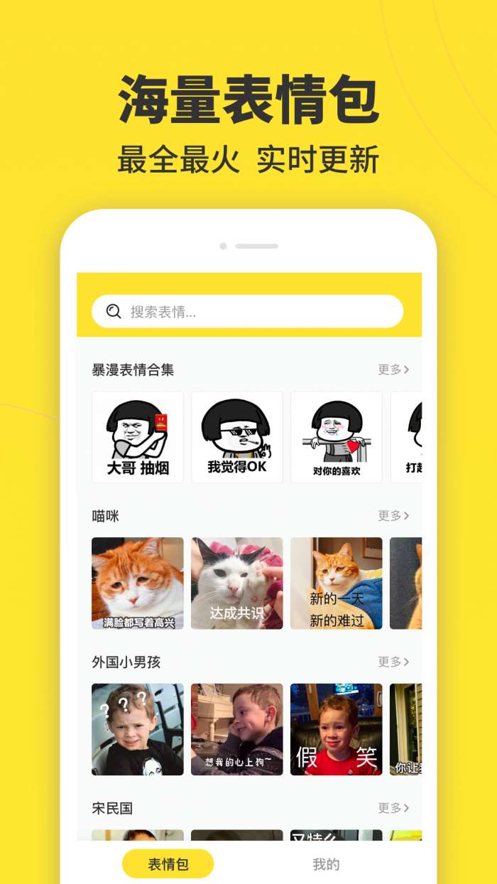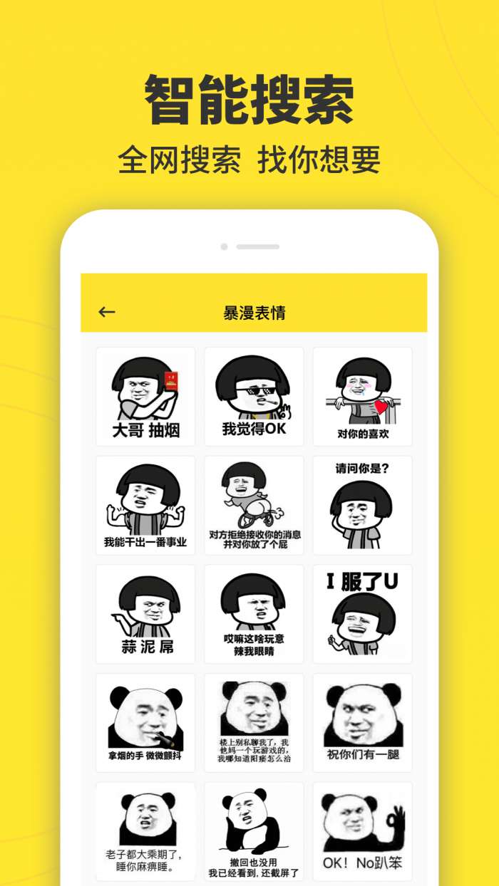 1、在线搜索的功能能够让用户输入相应的关键词来搜索,各种表情包会为用户呈现出最符合关键词的表情包