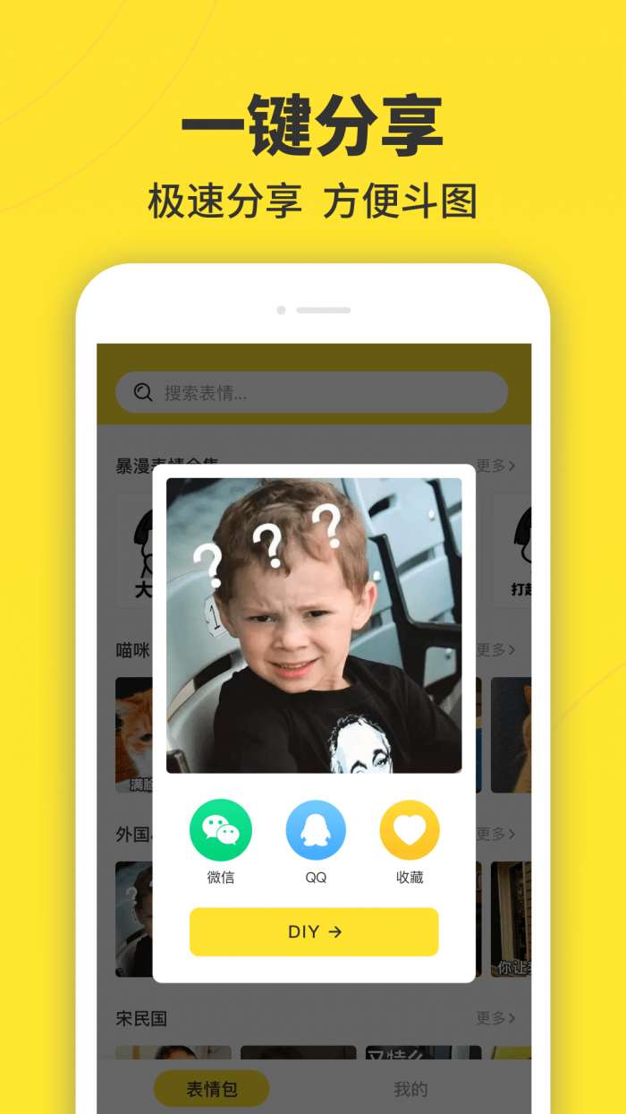 4、一键分享的功能,更是让用户在找寻到自己所喜欢的表情包的时候,直接把该表情包分享给自己的朋友进行查看