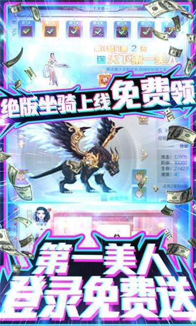 1.上线送vip12,千元充值卡,绝版坐骑上线免费领,第一美人登录免费送!上线就能买买买!!!开局当土豪,有钱又有型!这么爽岂能错过?