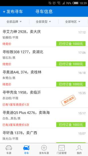 2.关键字搜索,各种组合搜索,快速找到您需要的汽车来源。