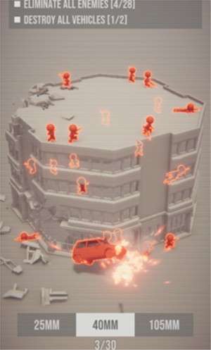 玩家必须派遣士兵到不同的建筑物执行爆炸任务。除了为您派遣大量人员外,您还可以安排高性能军用卡车和直升机