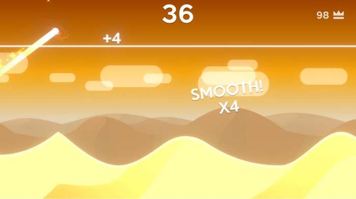 在游戏中玩家将操控一个不断在沙丘中前进的小白球,通过不同的手指操作让小白球从沙丘上飞起并达到一定的高度获得分数,不过飞的越高就越危险,如果让小球垂直硬着陆的话游戏就将会结束。