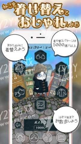 和猫咪一起散步,有时可以捡到硬币,使用硬币可以为猫咪买新的道具。