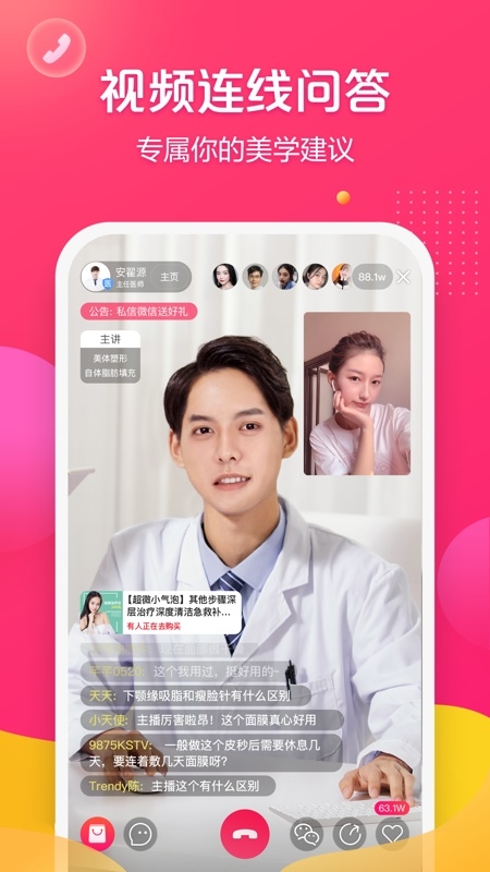 采用全新的医疗美容直播形式,用户可以在这里与名医互动;