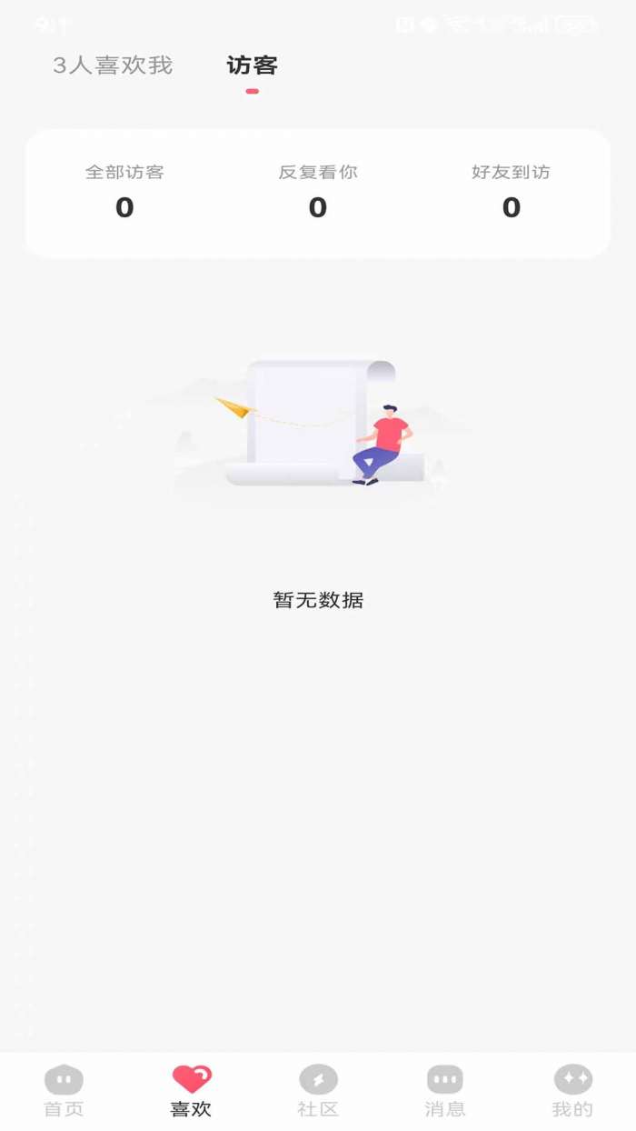 在社区分享动态,互动交流,同时查看访客记录,把握脱单机会,管理个人中心。