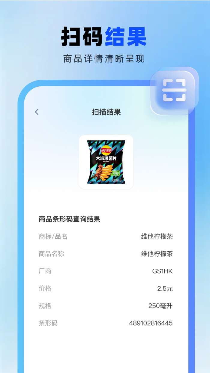 不仅支持常规的二维码扫描,还能识别各类条形码、商品码,帮助用户快速获取商品价格、厂商信息等详情。无论是超市购物还是网购比价,只需打开应用一扫,商品信息一目了然。