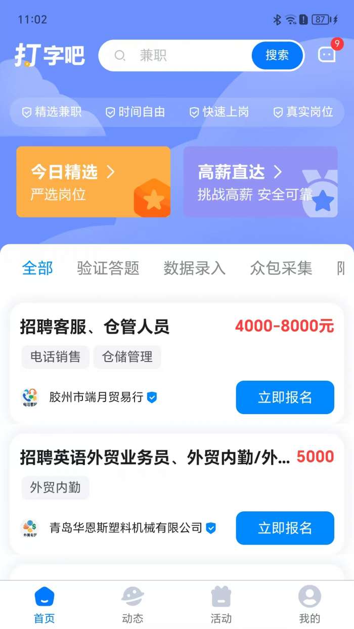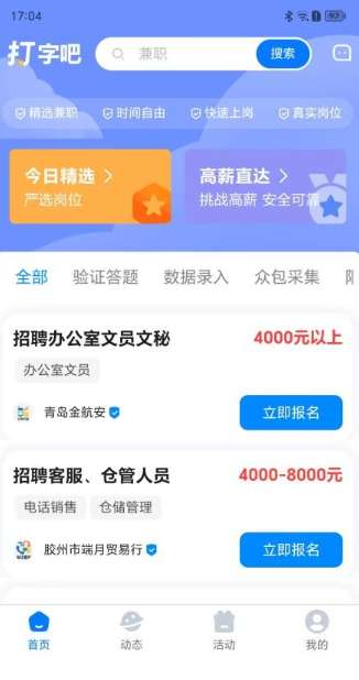 1、打开软件完成登录和认证,您就可以查看各种工作岗位了。