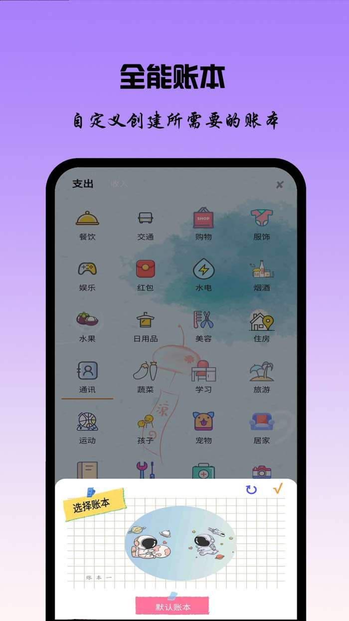 6、「多个账本」可以构建自定义多种账本,满足多场景记账需求。