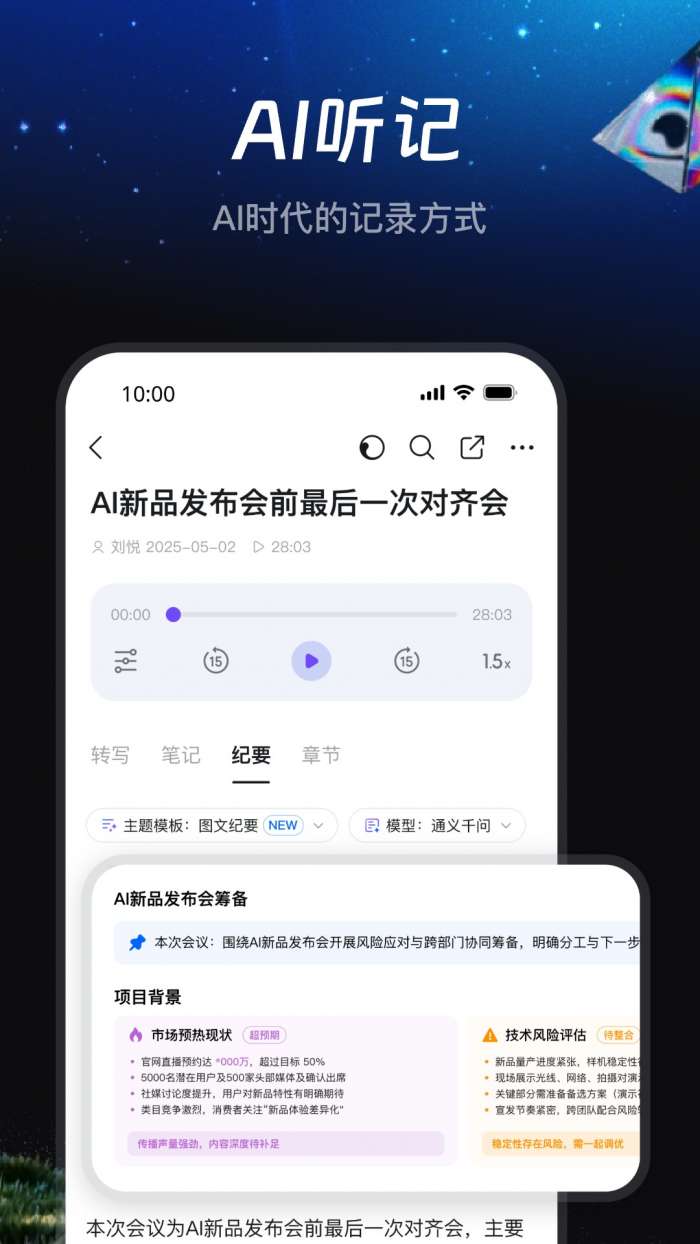 AI时代的记录方式:闪记升级为“AI 听记”,30+ 行业场景模板,支持声纹自动识别发言人。