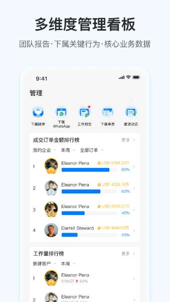 4、多维管理招牌、团队报告、下属关键行为、核心业务数据。