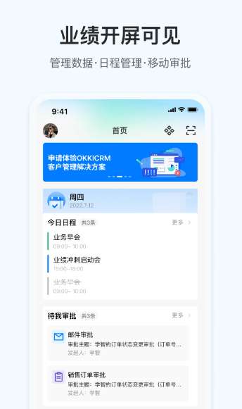 3、[ 报告看板 ] 销售业绩数据,客户跟进情况,一目了然;智能身份识别,业务员查看个人业绩数据,管理者查看团队销售数据。