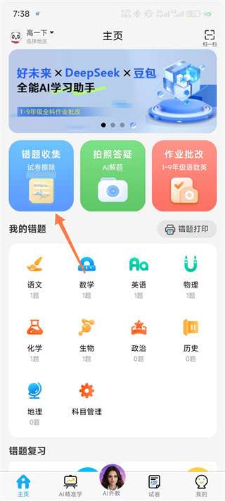 3、在错题收集模块中,可对需要记录的题目进行图像采集和数字化存储