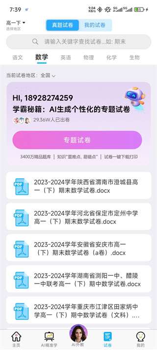 6、配备专题化练习题库,系统化巩固知识点,支持按学习进度智能推荐对应试卷