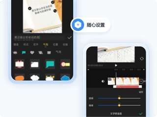 书单视频随心创作,软件内置各类模板随意取用,可根据个人喜好自由设置文字动画、气泡等;支持添加翻页动效,助您剪辑逼真视频。还可进行实时文字转语音,快速制作有声读物。