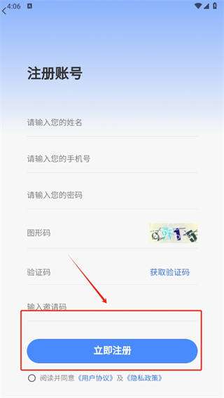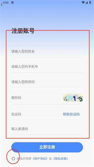 4、按照各种要求填写好信息即可,记得勾选上【阅读并同意《用户协议》及《隐私政策》】。