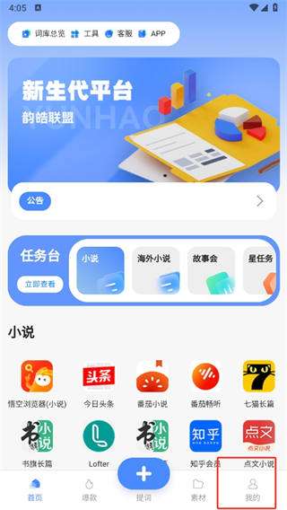 韵皓联盟专注于小说推文的手机软件,不仅聚集了多个主流小说平台,让你轻松参与推广赚取佣金,更有海量爆款文案素材等你来用。感兴趣的朋友们,别再犹豫了,快来下载体验吧!