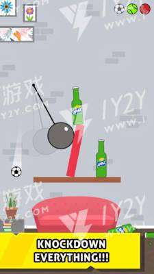 3、利用好物理轨迹,控制好小球,尽量扔准一点,把每一个瓶子都击倒