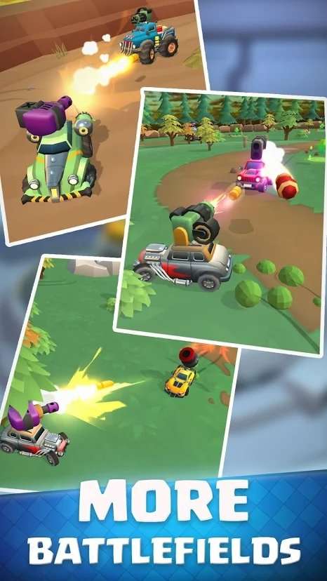 1.采用了卡通风格制作的场景画面,每个战车都会有着不同的属性以及玩法,需要你去多多练习。