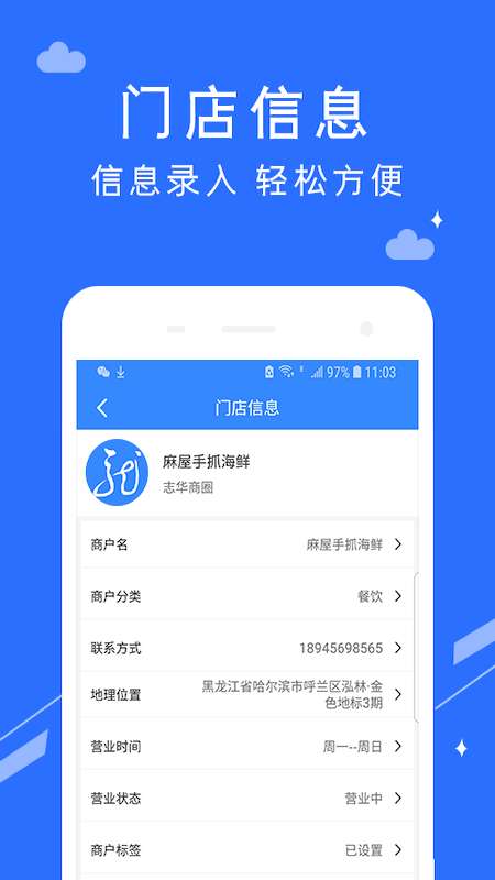 2、同时门店详细信息可以让你去进行详细录入,轻松方便地管理好自己的门店。