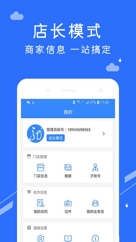 1、APP上面还有有开店的管家,可以让你去进行一手掌握门店的经营运营信息。