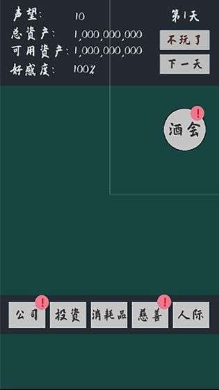 简单的游戏玩法,模拟富豪的人生,花光所有钱继承家产。