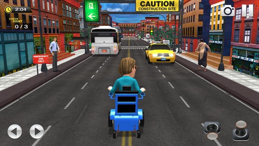 帮助那些行动不便的人们掌握好轮椅车的驾驶,可以让她们去往自己想去的地方,在各个路口需要注意速度的控制,能够在一个安全的情况下顺利的到达目的地。