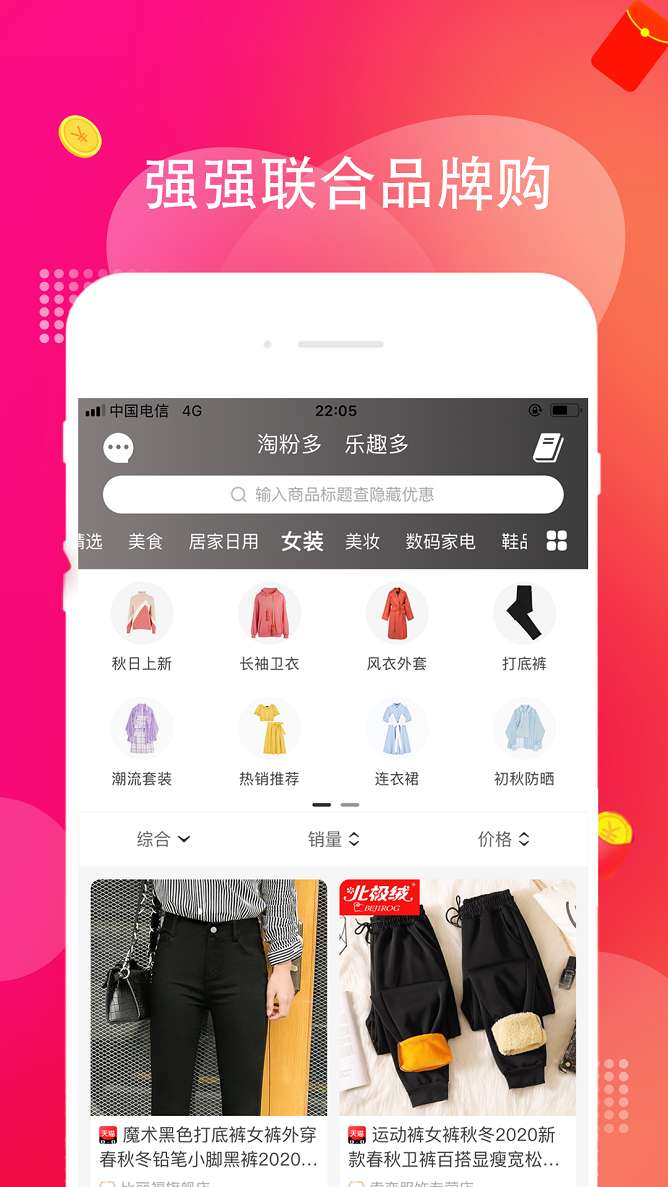 淘多多app是一款优惠的在线购物平台,以大量高品质产品为特色。用户可以在平台上搜索自己需要的商品,并以最优惠的价格把商品带回家!而且这里有很多大牌,货真价实,靠谱。没有假货。所有的货物都是官方直接送来的,这样大家就不会白花一分钱了。它涵盖了从服装,家居用品,食品,鞋子,包等等,满足您的购物需求。同时,你可以在购物前搜索优惠券,以节省更多的钱。