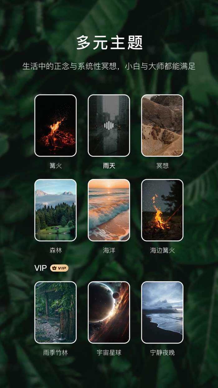 1、多种冥想场景可以满足不同的需求,让你在不同的情况下找到适合自己的冥想方法。