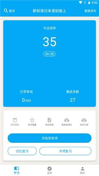 1、在本站下载并安装软件后打开,进入软件首页,在首页可以进行计划学习以及复习。