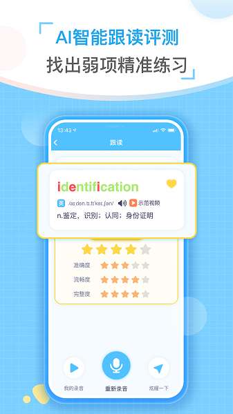 1、AI智能发音校正:利用高精度语音识别技术,实时比较标准发音,准确指出音素偏差。