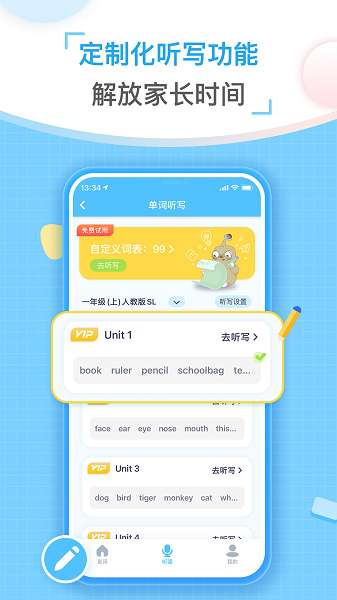 童伴纠音是一个非常好用的英语口语发音纠正的软件,软件有非常专业的评测教学,能够轻松改善你的口语发音,让你拥有一口流利度英语口语,练习课内单词发音好帮手,家长家庭辅导必备!观看由母语国家儿童录制的单词发音视频,结合口型示范、发音分解、慢速领读,以及趣味跟读、AI发音评测、听写等功能,助力孩子单词发音更标准、地道,单词听写更便捷、有趣。